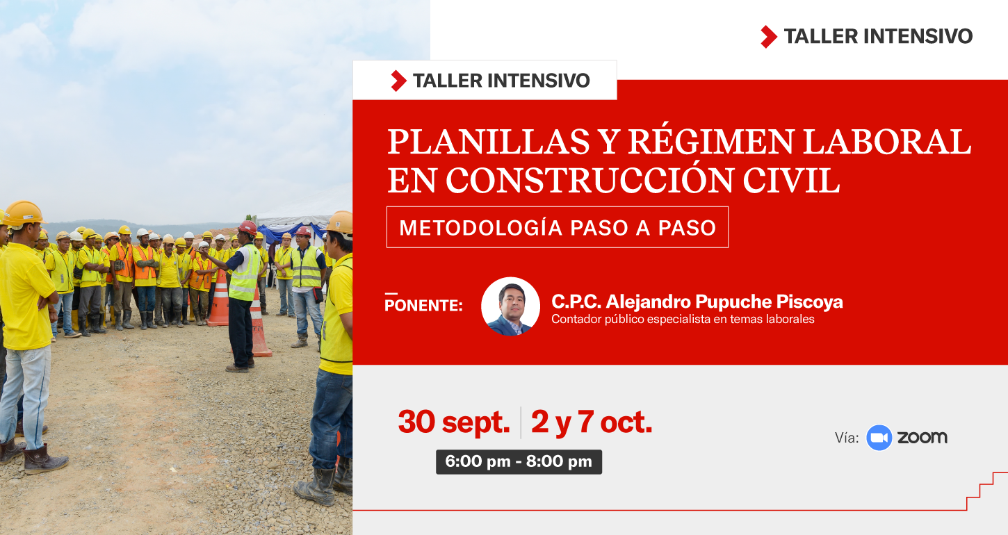 6 noviembre - 6:00 pm - 8:00 pm PLANILLAS Y RÉGIMEN LABORAL EN CONSTRUCCIÓN CIVIL — METODOLOGÍA PASO A PASO TEMARIO: INSCRIPCIONES:
